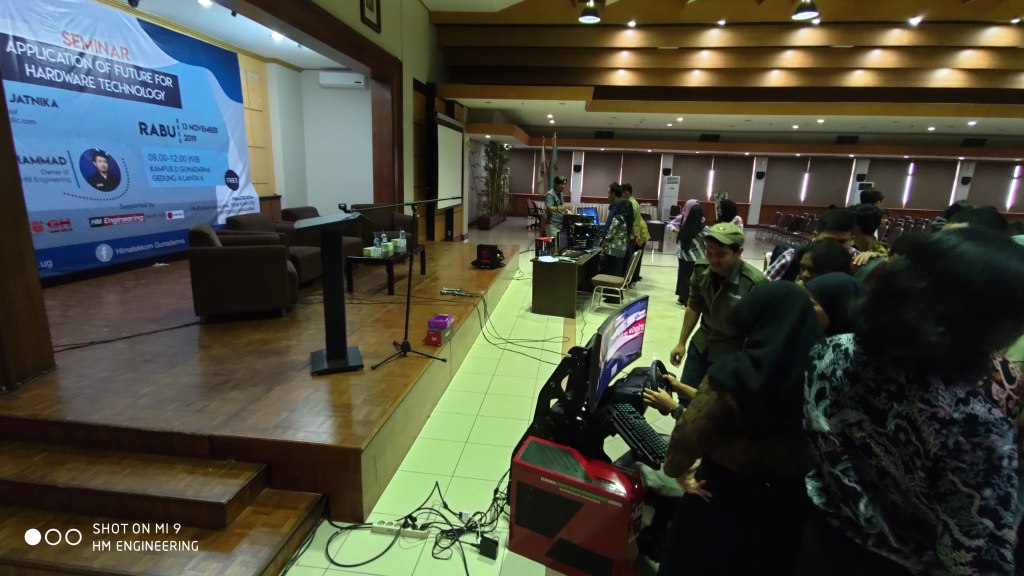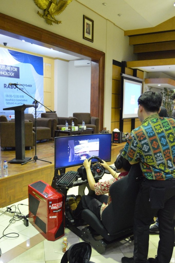 In collaboration with Dicky Jatnika (HarwareHolic.com) to perform our products, GT-One Racing Simulation Cockpit and Virtual Sentul International Circuit in a seminar at Universitas Gunadharma, 13th November 2019.